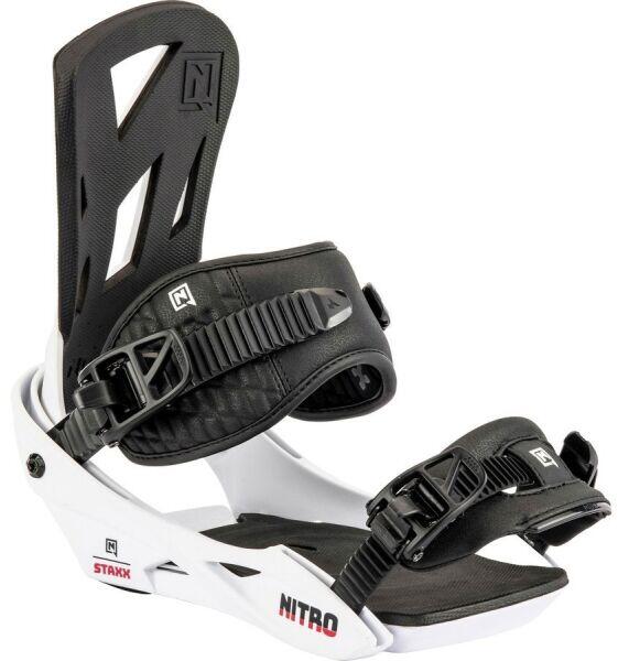 A Nitro STAXX férfi snowboard kötést minimális súly és maximális kényelem jellemzi. Alumínium reteszekkel rendelkezik, és az alsó csatot acélszállal megerősített heveder kapcsolja össze. A Staxx egy darabból álló A-Frame alapot használ, amely tökéletes illeszkedést és minimális súlyt biztosít.